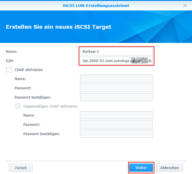 iSCSI LUN und iSCSI Target erstellen